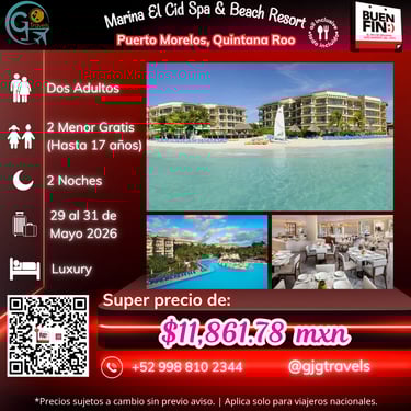 En este apartado encontrarás nuestras promociones y eventos más destacados. Si buscas más opciones, explora nuestra pestaña de Servicio y descubre una amplia variedad de destinos y hoteles.